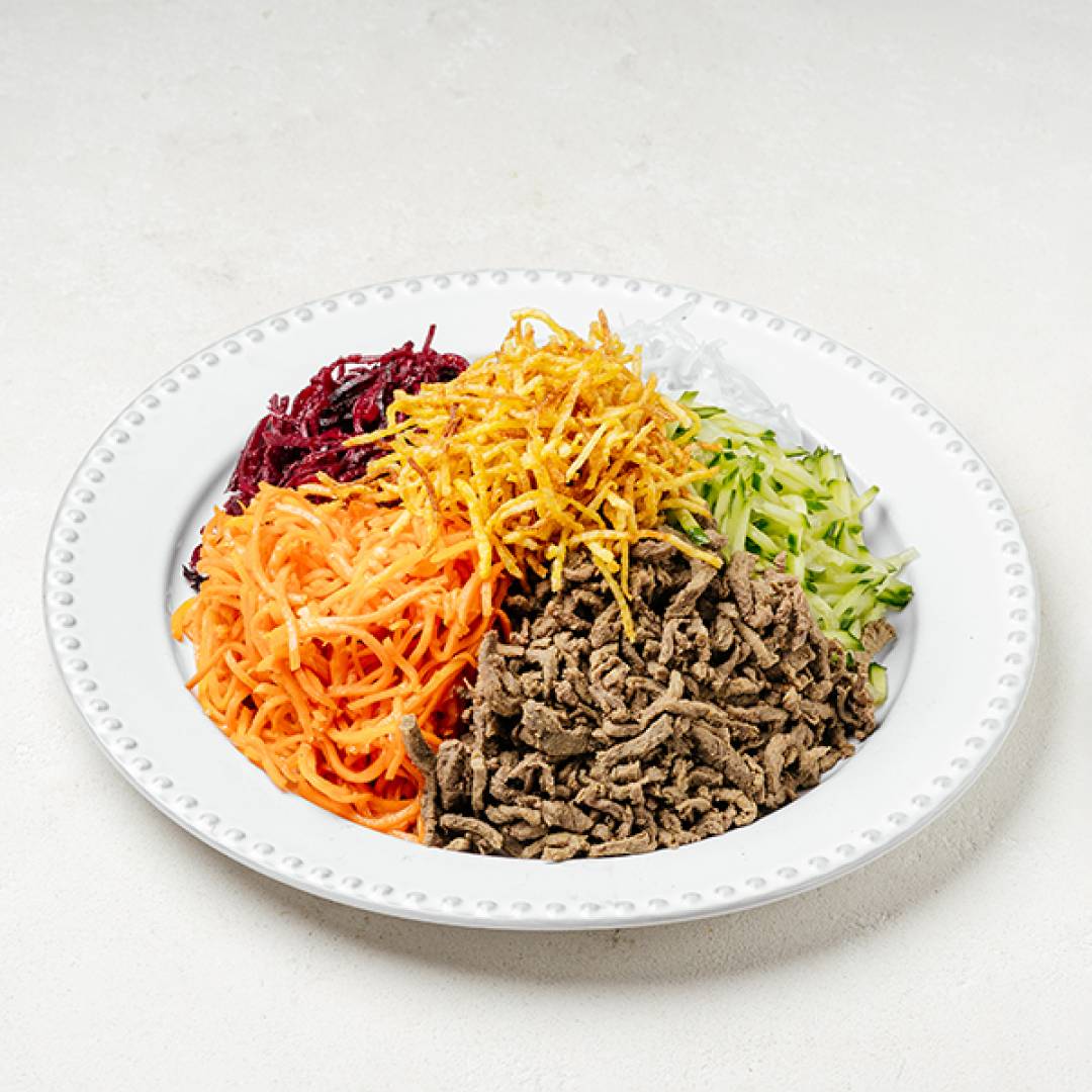 Капуста, майонез, огурец, говядина, свекла, морковь, пай