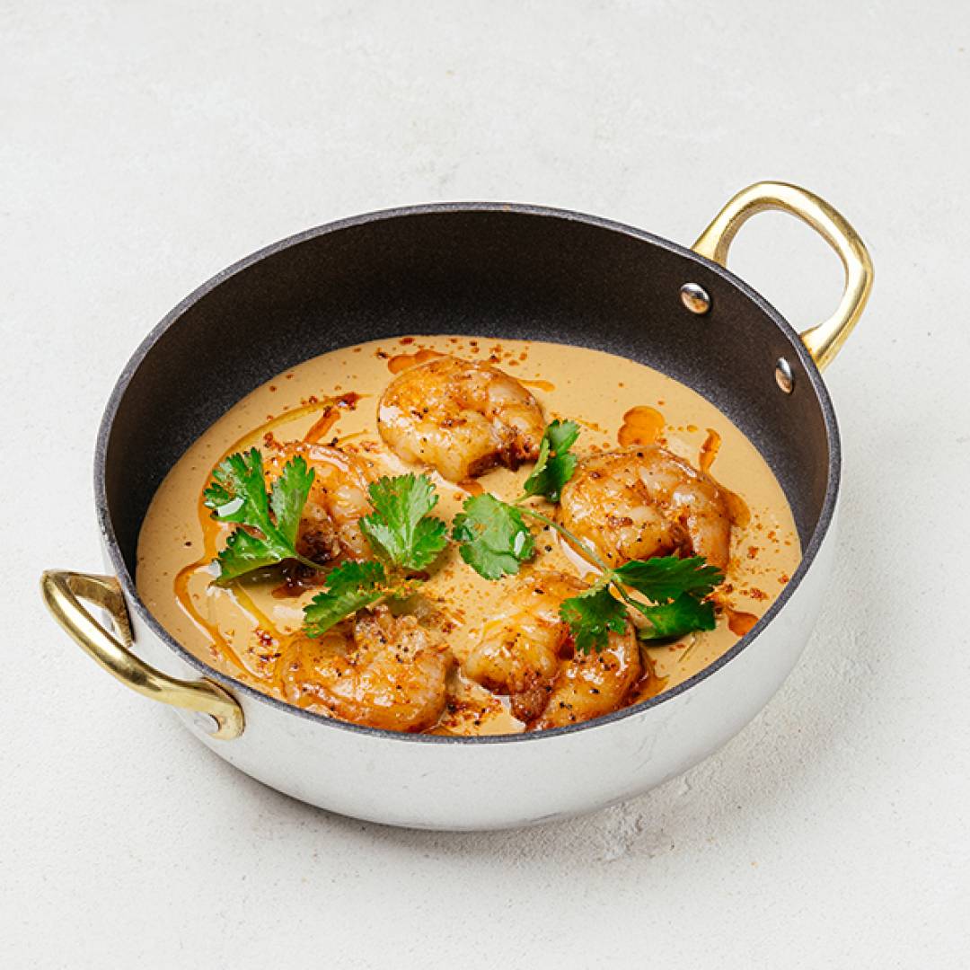 Говяжий бульон, креветки, масло аджики, кинза, сациви, лук-резанец