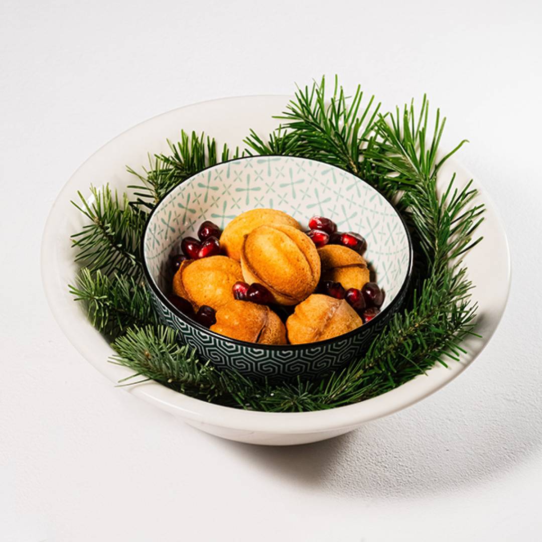Классические орешки с тремя видами крема: вишня-мацони, заварной крем с шоколадом и мандарином, крем с шоколадом и грецким орехом. В порции 6 шт.